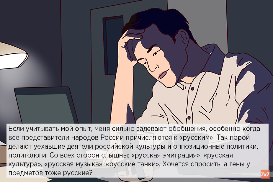 В 2023 году «7х7» и проект «Четвертый сектор» выпустили большое исследование «Нерусский мир» о положении нетитульных наций в РФ. Оно началось с вопроса о том, почему российские власти собрались «денацифицировать» Украину, тогда как сами частично поощряют националистические настроения.