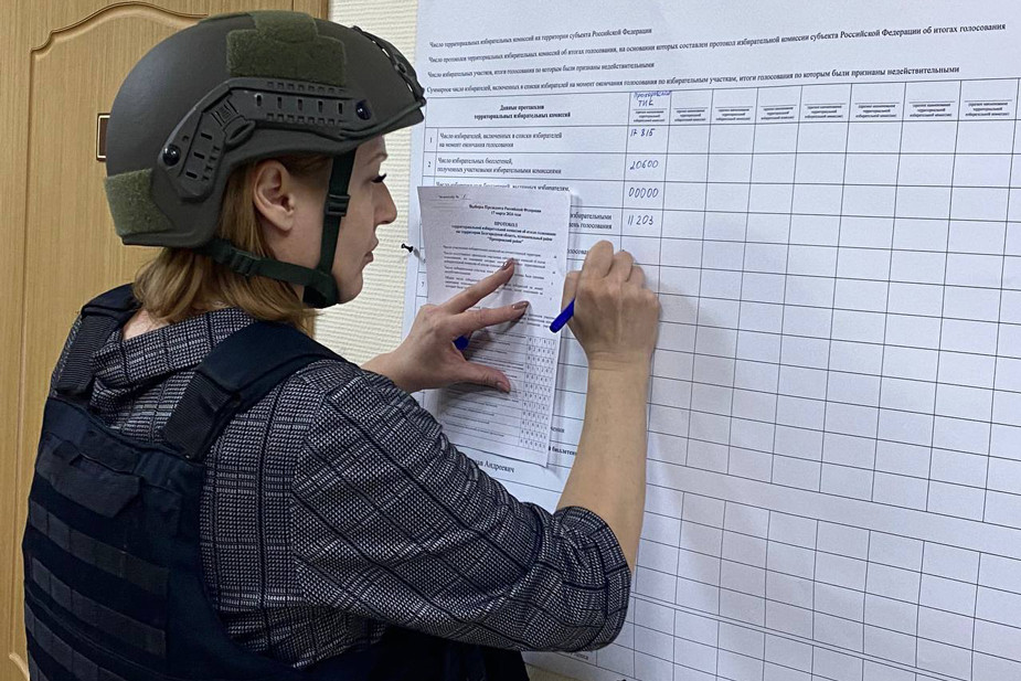Члены УИК в бронежилетах во время президентских выборов. Фото: избирком Белгородской области / Telegram