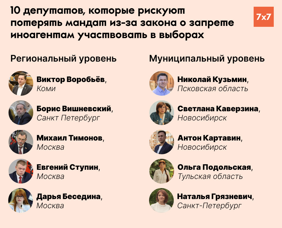 Некоторые депутаты-иноагенты, которые рискуют потерять мандаты из-за поправок, отказались говорить с “7х7”. Они боятся, что комментарии СМИ-иноагенту помешают им выиграть суды.