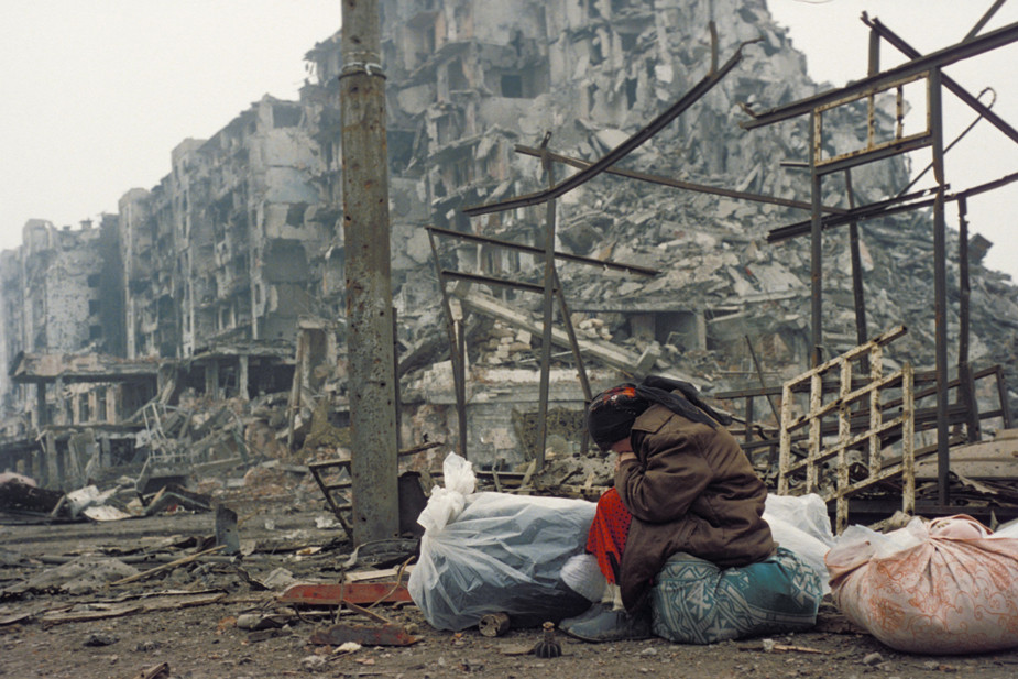 Жительница Грозного в своей полуразрушенной квартире после массированных бомбежек, март 1995 года. Фото: Эдди Опп / Коммерсантъ / Sipa USA / Vida Press