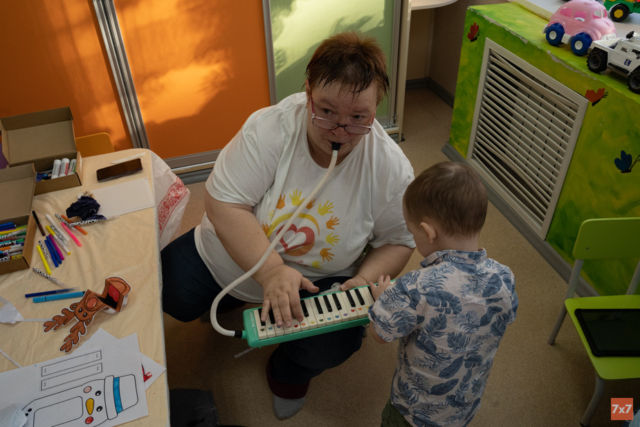 К Илье, который присоединился к волонтерам еще в самом начале, в игровую комнату заходит Маша. Она чуть постарше, голова обрита так же, как у Ильи.