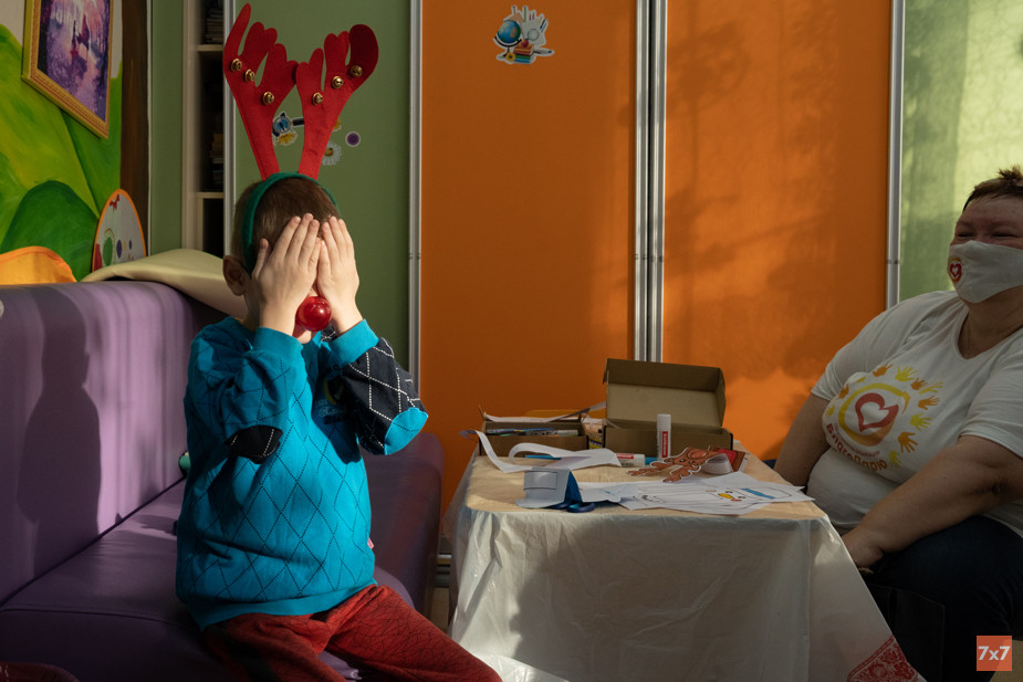 Он не очень хорошо говорит, но поиграть тут же соглашается и идет следом за волонтерами. Врачи и медсестры у пришедших ничего не спрашивают: все привыкли, что они здесь будут в воскресенье в 11:00. У взрослых волонтеров пакеты с карандашами, ножницами, клеем, стопкой бумаг, музыкальным инструментом, ободком-рожками оленя. К новому году на мастер-классе дети будут делать бумажные игрушки.