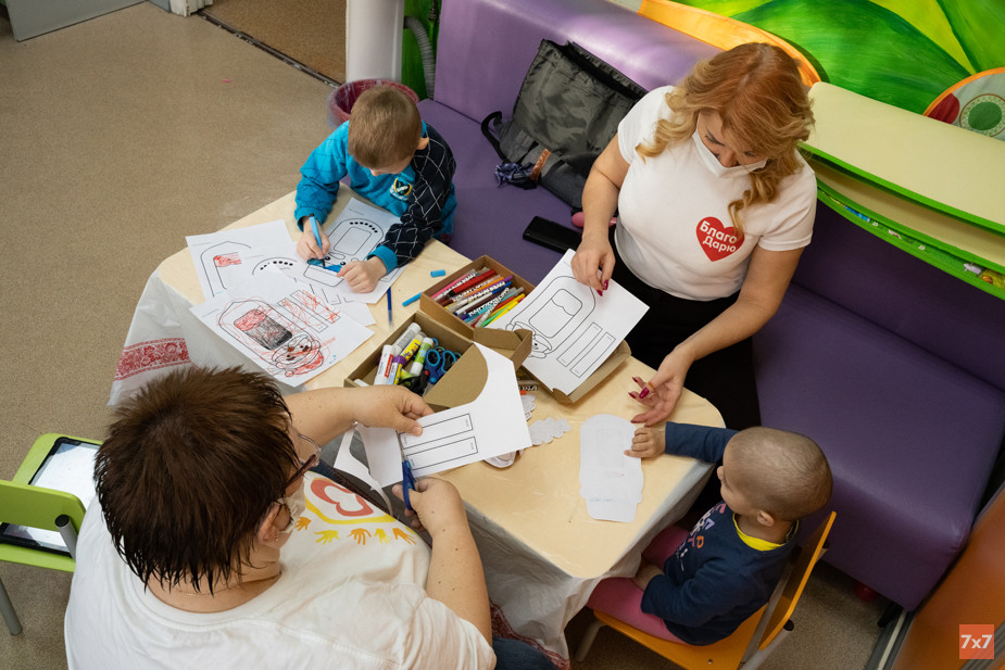 — Дети всегда разные. Кто-то нас ждет — знает, что мы в воскресенье придем. Кто-то приходит и просто играет не с нами, а мама с нами мастерит — тоже отдых какой-то. Или вообще, ребенка оставляют у нас, а мама бежит в магазин или еще куда-то, знает, что под присмотром ребенок. Бывает, что мамы сами отправляют детей как раз поэтому — условия же не самые приятные, все-таки больница, круглосуточно с болеющим ребенком. Это тяжело.