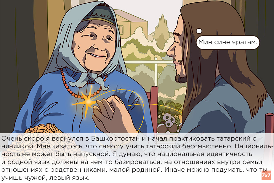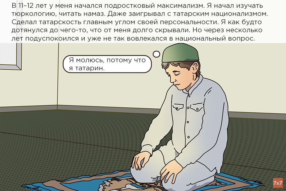 Татарская бабушка Тимерхана не стала учить сына и внука своему языку — подумала, что это будет для них бременем. Тимерхан рос в русскоязычной среде, в окружении преимущественно русских православных людей. На Пасху он красил яйца, в Прощеное воскресенье просил прощения у родных, и эти традиции остались с ним до сих пор. Но кроме них у Тимерхана появились другие: изучение татарского языка, разговоры с бабушкой, а также постижение своей второй культуры.