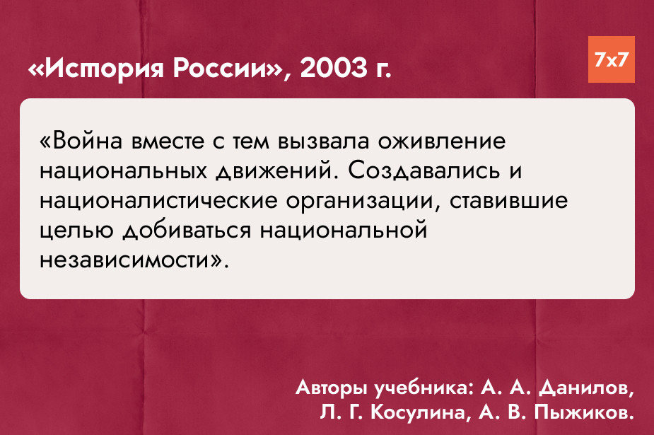 — В истории стали искать корни сепаратизма и нашли их. Тогда надо было учить новое поколение граждан России, как этому [сепаратизму] сопротивляться.