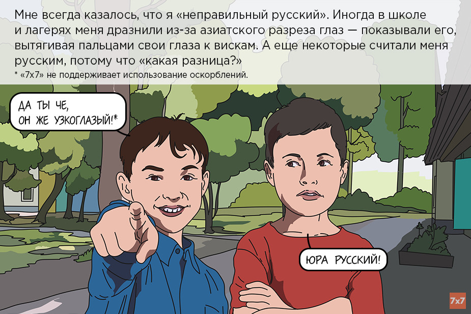 В детстве Юра считал себя «неправильным русским» из-за нерусской фамилии и внешности, не похожей на славянскую. Подростком узнал, что он коми-пермяк. Начал изучать культуру и историю предков. С тех пор Юра борется за то, чтобы его не называли русским, а коми-пермяков не считали «подвидом» славян.