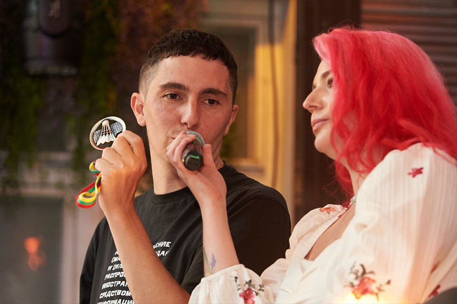 На фестивале прошел благотворительный аукцион. Один из лотов - партия в бадминтон с журналистами Дмитрием Низовцевым и Александром Плющевым. Его выкупили за 160 евро.