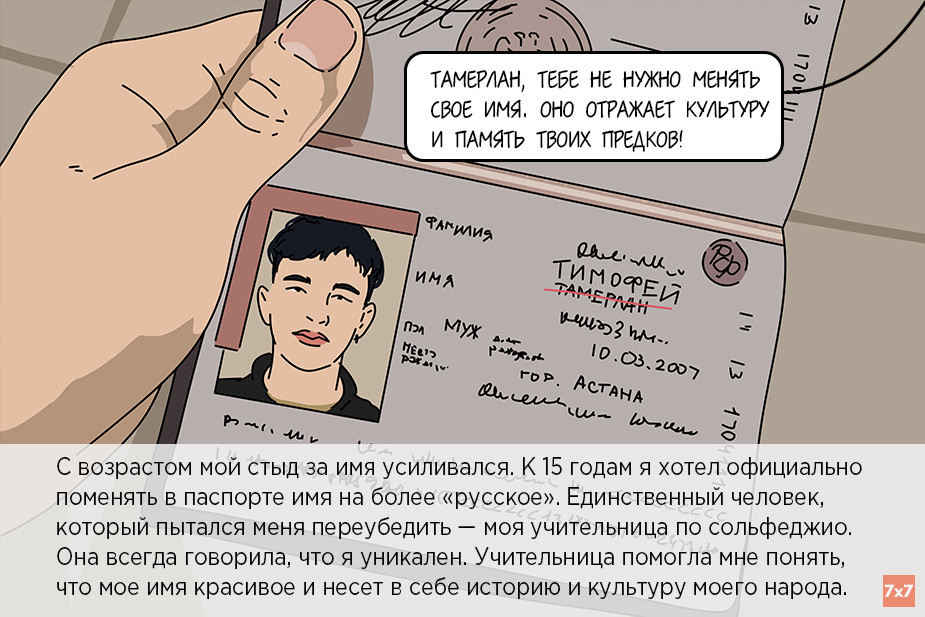 После переезда Тамерлана из Казахстана в Россию окружающие начали называть его Тимуром, Тимофеем, Чонгуком (корейский певец) и том-ямом (тайский суп). Из-за передразниваний и чувства стыда за свое происхождение к 15 годам мальчик захотел поменять имя на «русское». Спустя три года он рад, что сделать это так и не получилось из-за бюрократических сложностей.