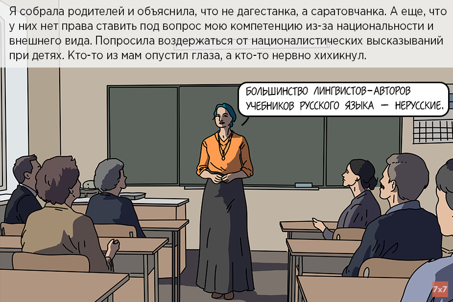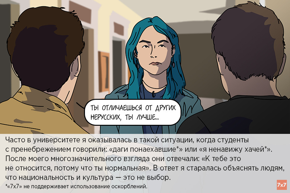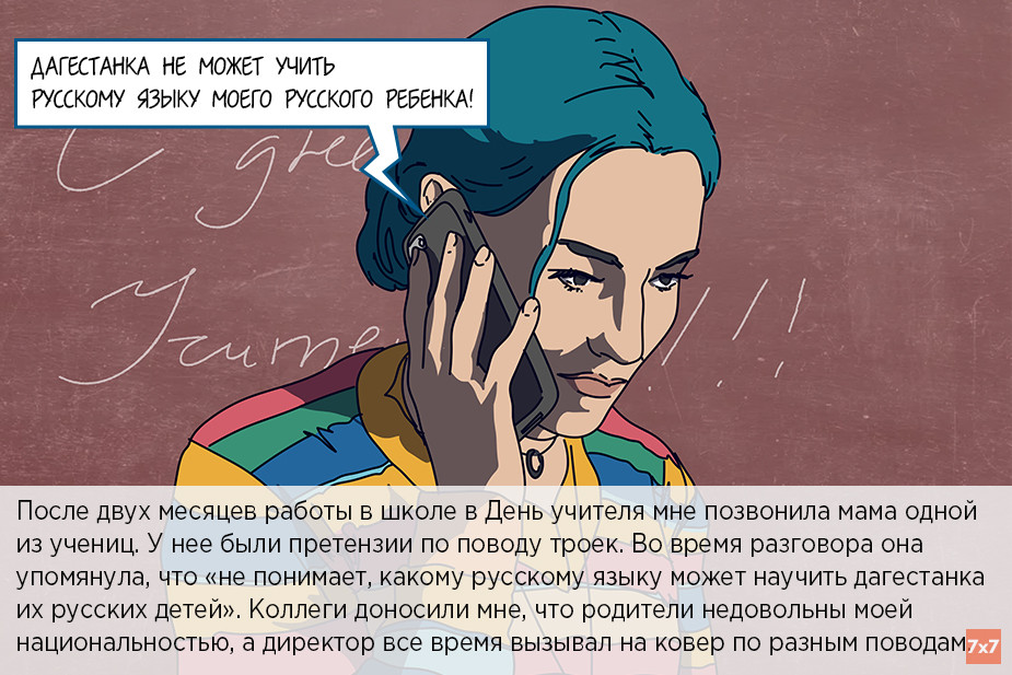 Впервые Мадина столкнулась с ксенофобией в школе. От нападок одноклассников ее защитила учительница. Повзрослев, Мадина сама устроилась на работу в школу. История повторилась — и теперь ее оскорбляли не только ученики, но и их родители. Ей пришлось самой объяснять обидчикам, почему нельзя дискриминировать людей по национальной принадлежности.