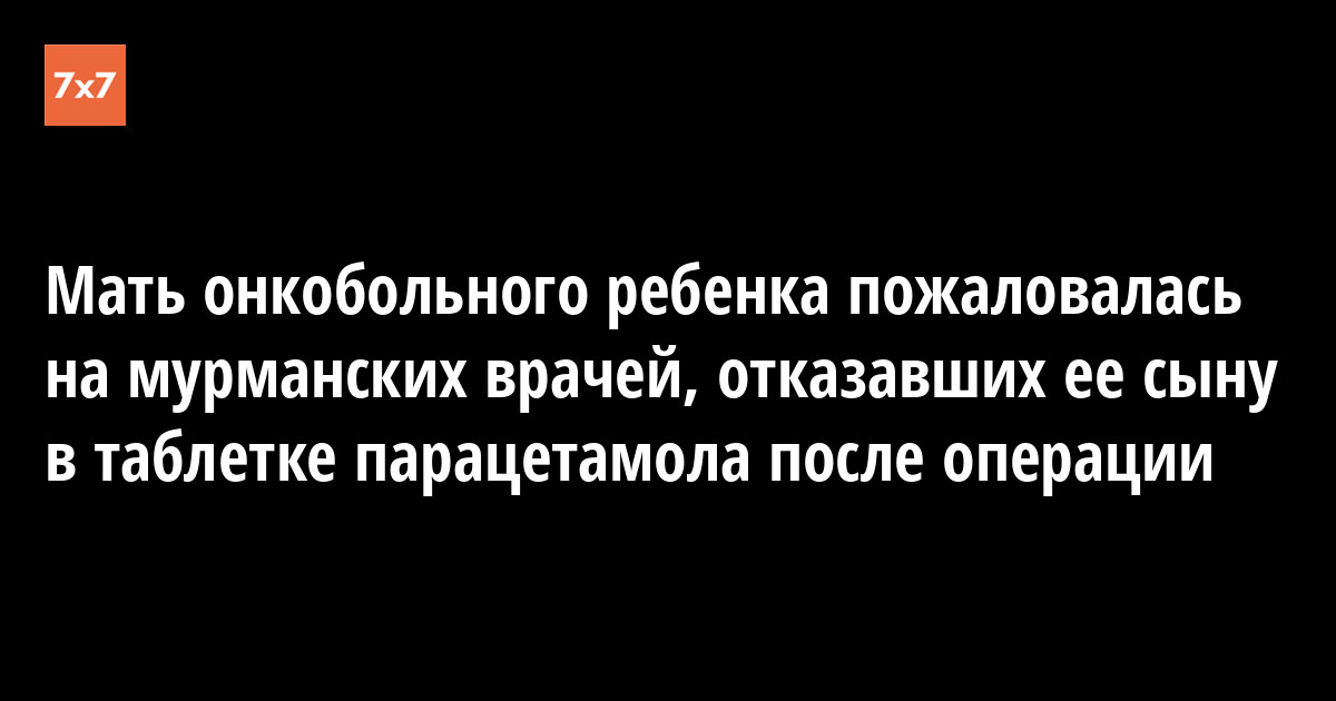 В Мурманской областной больнице мальчику после плановой операции врачи отказались дать жаропонижающее, сославшись на нехватку препаратов, — рассказала 7 апреля корреспонденту «7x7» мама ребенка Татьяна Демидова.