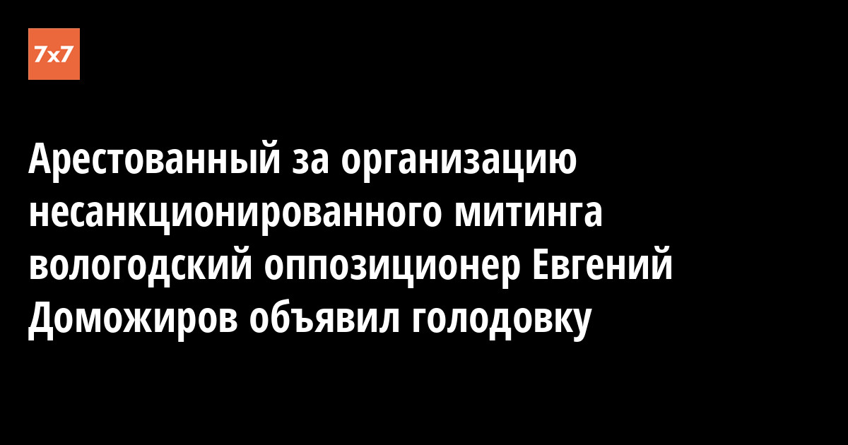 Экологический активист и глава вологодского отделения Партии прогресса Евгений Доможиров 26 мая в 22 часа объявил голодовку в знак протеста против решения суда о его аресте на 10 суток за организацию несогласованного митинга и неповиновение представителям власти, — об этом сам Доможиров сообщил в своем видеообращении, которое он записал сразу после суда.