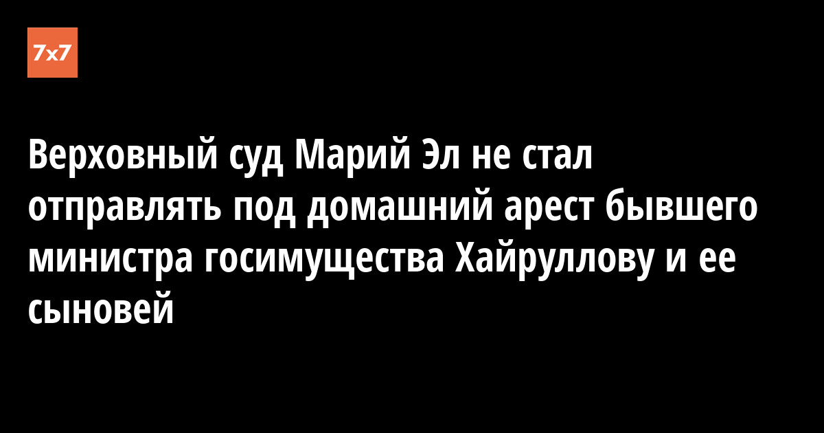 Верховный суд Марий Эл оставил в силе решения городского суда, заключившего под стражу на два месяца бывшего министра государственного имущества республики Наталью Хайруллову и двух ее сыновей, Руслана и Роберта Хайрулловых, сообщили 30 декабря в пресс-службе суда.