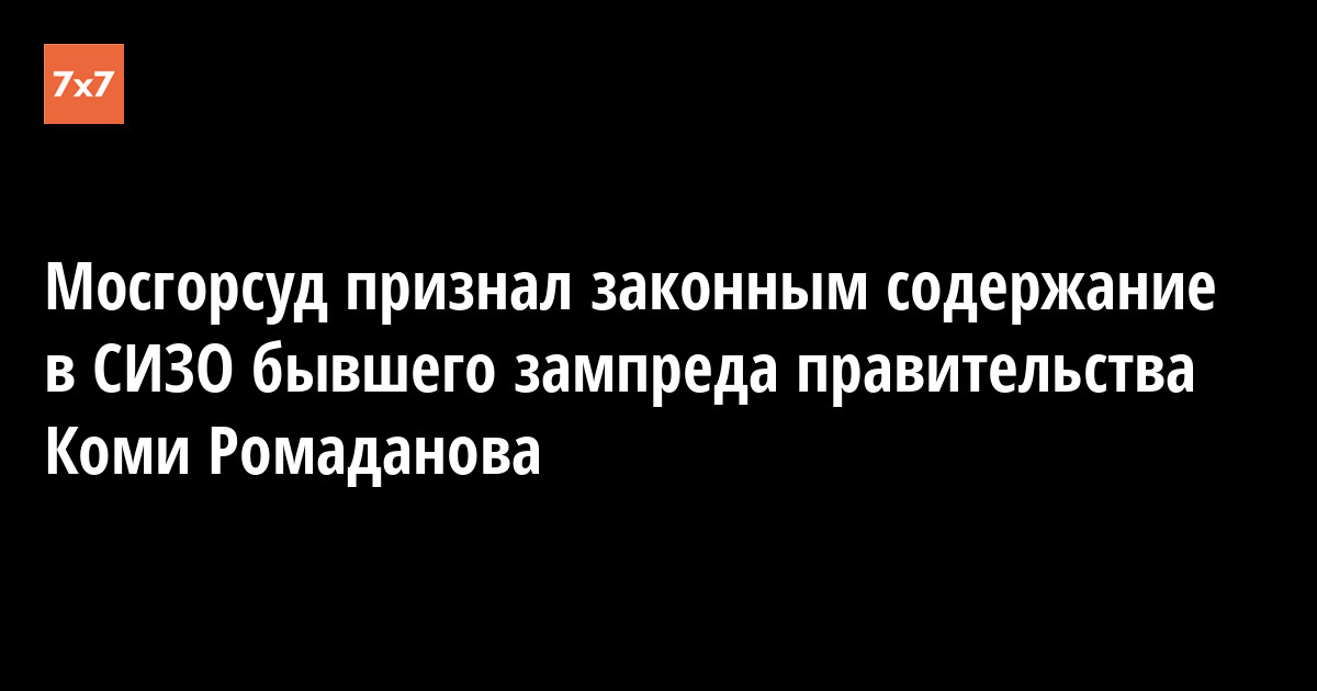 Мосгорсуд 13 февраля оставил в силе решение Басманного суда от сентября 2016 года, который продлил бывшему заместителю председателя правительства Коми Константину Ромаданову меру пресечения в виде содержания под стражей. Об этом «7x7» сообщили в Мосгорсуде.