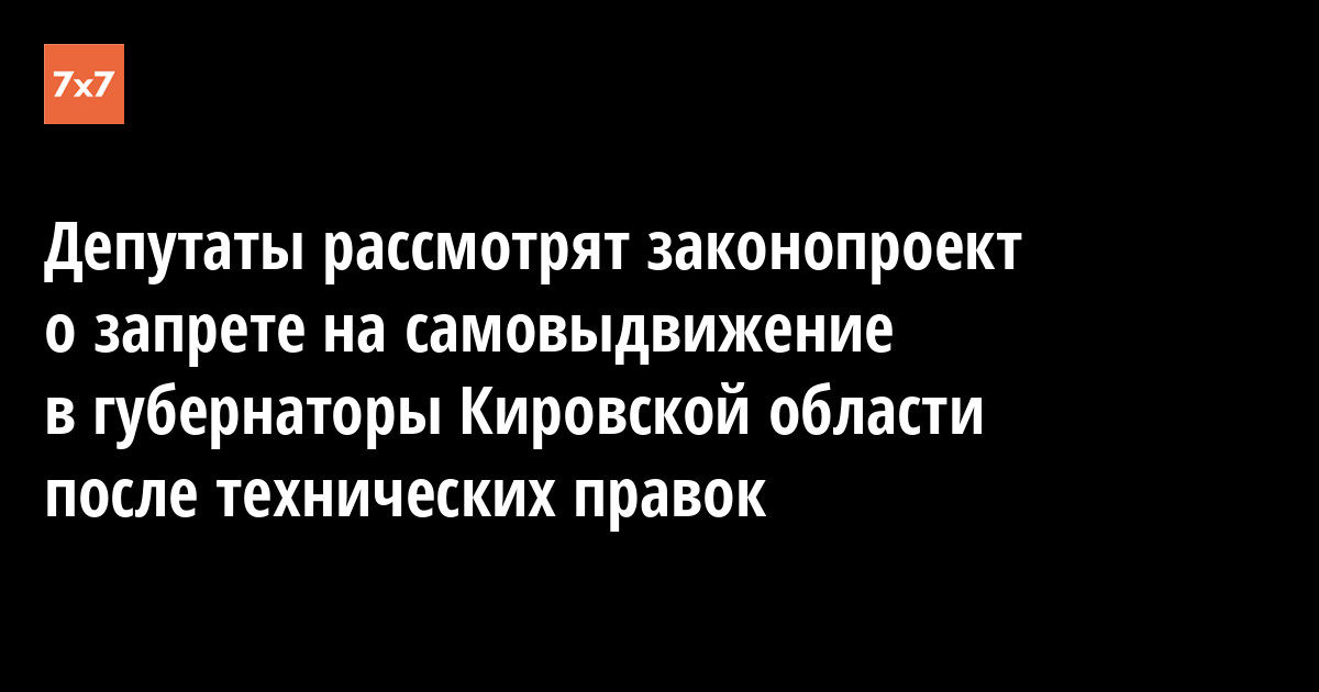 Рассмотрение законодательной инициативы, которая предлагает не допускать самовыдвиженцев на выборы губернатора в Кировской области, перенесено. Об этом 16 февраля на пленарном заседании Заксобрания сообщил председатель парламента Владимир Быков.
