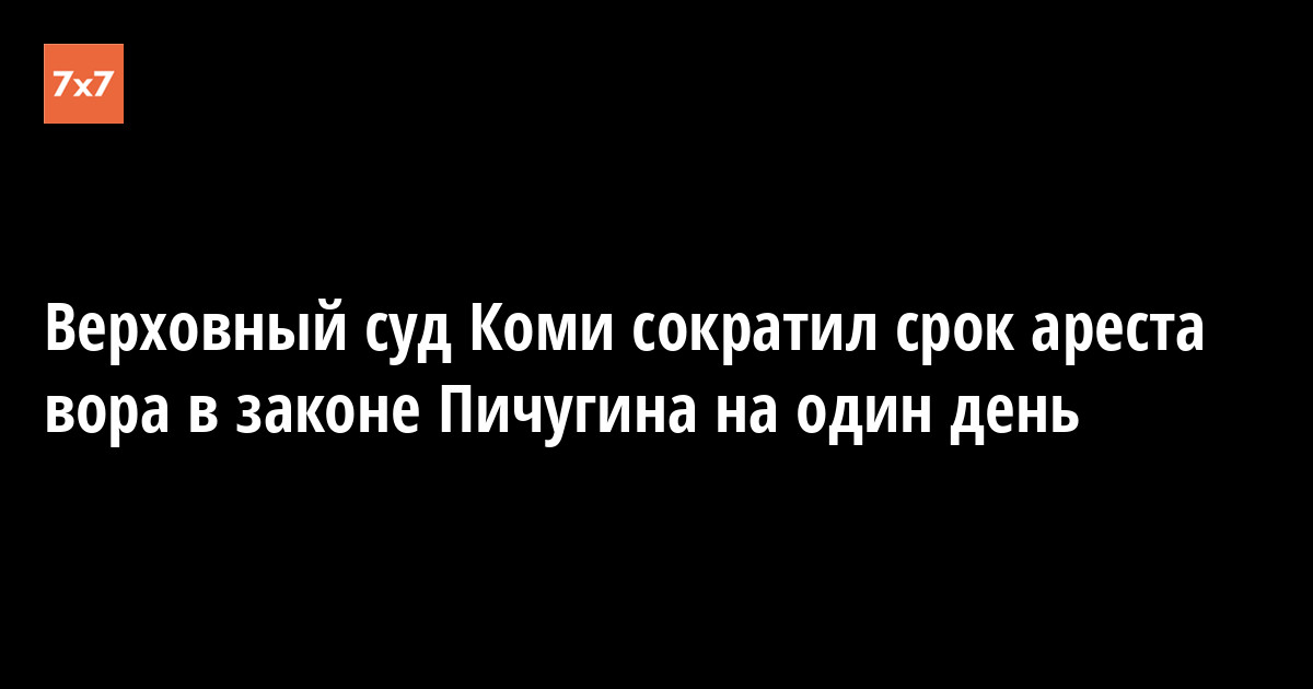 Верховный суд Коми 6 марта на один день сократил срок ареста обвиняемого в создании и участии в организованном преступном сообществе Юрия Пичугина, известного в криминальном мире как Пичуга, но в целом оставил без удовлетворения апелляционную жалобу на решение Сыктывкарского городского суда, — сообщает корреспондент «7x7» из зала суда.