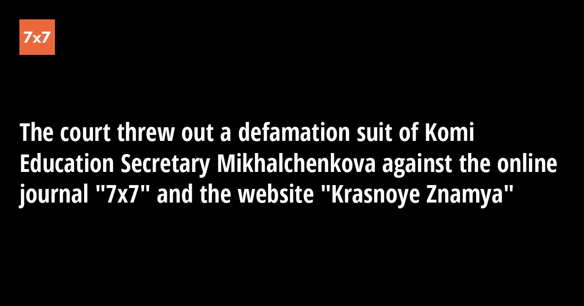 On April 17, the Syktyvkar city court decided to throw out a defamation suit of Komi Education Secretary Natalia Mikhalchenkova against the online journal "7x7" and the website "Krasnoye Znamya" [Red Banner], as reported by the "7x7" journalist from the courtroom.
