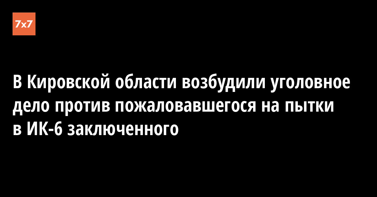 На осужденного Эдуарда Горбунова, заявившего о пытках в исправительной колонии №6 в городе Омутнинске Кировской области, завели уголовное дело по статье 306 Уголовного кодекса России («Заведомо ложный донос»), — об этом «7x7» сообщил зампредседателя Общественной наблюдательной комиссии Кировской области Артур Абашев, который побывал в ИК-6 с проверкой.