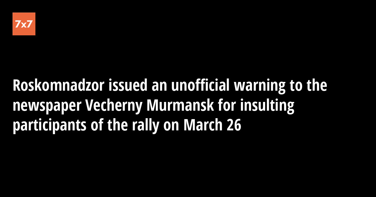 Murmansk Roskomnadzor sent a warning to the newspaper Vecherny Murmansk for abusive language aimed at participants of the anti-corruption action. The journalist called the protesters 'riffraff', 'snotty-nosed' and 'fighting ...', referring to belonging to the LGBT community. This is evidenced by the response of Roskomnadzor, provided to the editorial office of «7x7» by one of the activists.