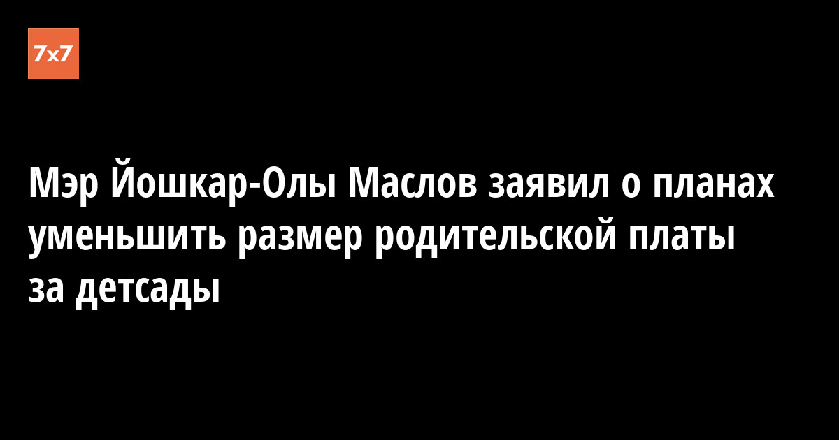 Мэр Йошкар-Олы Евгений Маслов заявил о намерении городских властей уменьшить с 1 июля родительскую плату за детские сады, сообщает пресс-служба мэрии 30 мая.