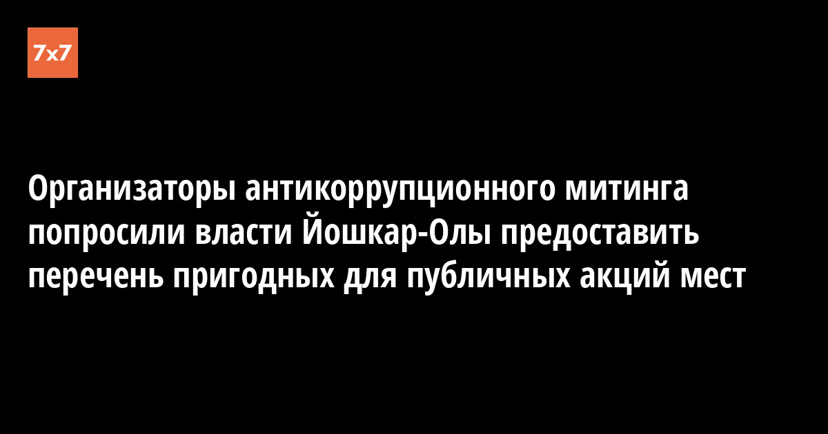 Организаторы антикоррупционного митинга попросили администрацию Йошкар-Олы обосновать предложение изменить место их публичной акции 12 июня. В уведомлении они указали, что из предыдущих ответов делают вывод о намерении воспрепятствовать проведению митинга. Представители штаба Навального попросили власти города предоставить перечень всех пригодных для проведения публичных мероприятий территорий в центральной части города (от улицы Кирова на востоке до ДК им. Ленина на западе, от улицы Красноармейской на севере до улицы Суворова на юге, от пересечения улиц Воинов-Интернационалистов и Кирова на северо-востоке, Кирова и Ленинского проспекта на юго-востоке, Машиностроителей и Красноармейской на северо-западе и Машиностроителей и Ленинского проспекта на юго-западе).