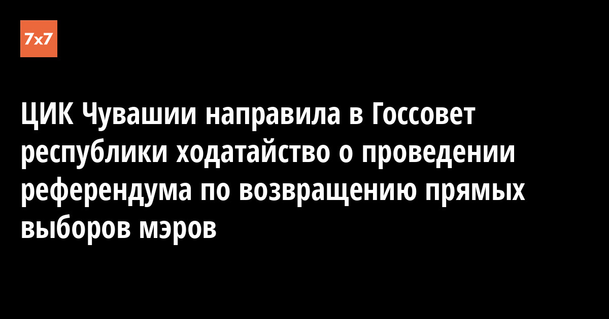 Центральная избирательная комиссия (ЦИК) Чувашской республики направила в Государственный совет региона ходатайство местного отделения ПАРНАСа о проведении референдума по возвращению прямых выборов глав городов. Об этом 21 июня сообщается в группе чувашского ПАРНАСа в Facebook.