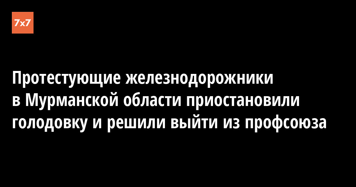 После переговоров с начальством четверо рабочих-железнодорожников Кандалакшской дистанции пути решили приостановить голодовку до приезда проверяющих из дирекции РЖД в Москве и выйти из официального профсоюза. Об этом 28 июня корреспонденту «7x7» рассказал инициатор протестной акции Сергей Фатеев.