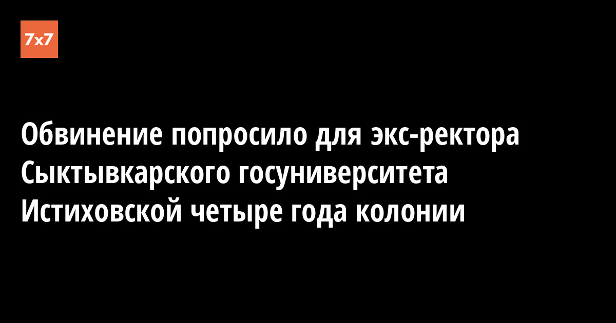 На прениях в суде 10 июля представитель прокуратуры потребовал четыре года колонии общего режима для бывшего ректора Сыктывкарского госуниверситета, депутата Госсовета Коми Марины Истиховской, обвиняемой в превышении должностных полномочий, — передает корреспондент «7x7» из зала суда.