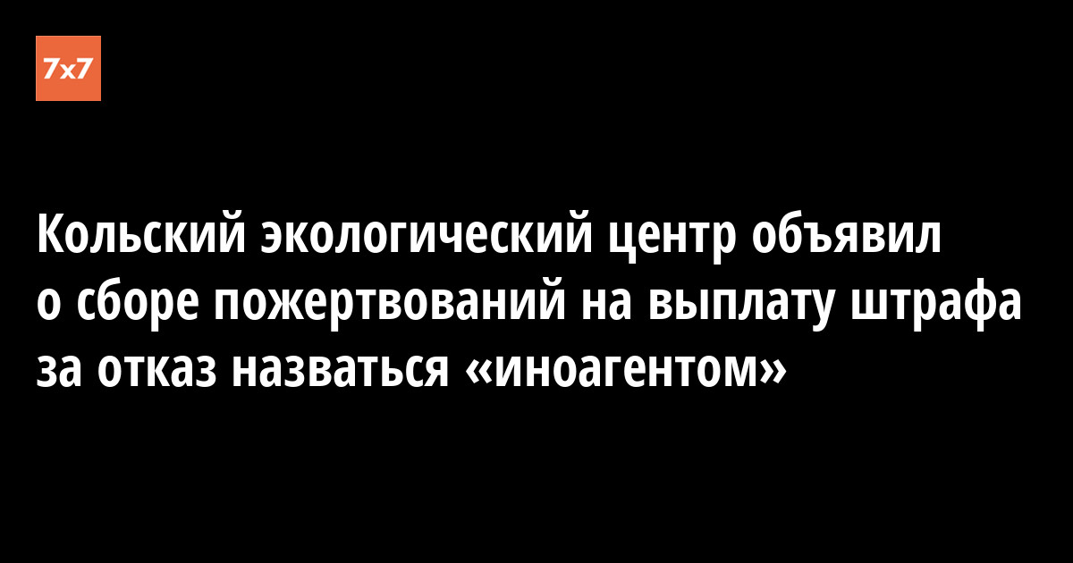 Одна из старейших общественных организаций Кольского полуострова «Кольский экологический центр» объявила о сборе пожертвований для оплаты штрафа за то, что отказалась назвать себя «иностранным агентом», — сообщило издание The Independent Barents Observer 9 июля.