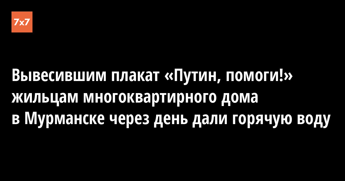 Жильцам многоквартирного дома № 6 на Кольском проспекте в Мурманске включили горячую воду через день после того, как они вывесили на фасаде здания плакат с надписью «Путин, помоги, уже год нет горячей воды!». Об этом 20 июля сообщило издание «Вечерний Мурманск».