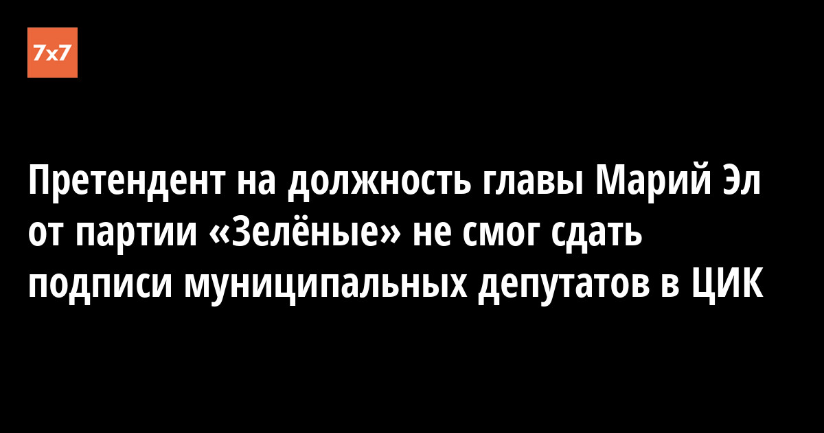 Кандидат от партии «Зелёные», выдвинувшийся на выборы главы Марий Эл, не сдал подписи муниципального фильтра, сообщили 26 июля в пресс-службе ЦИК Марий Эл.
