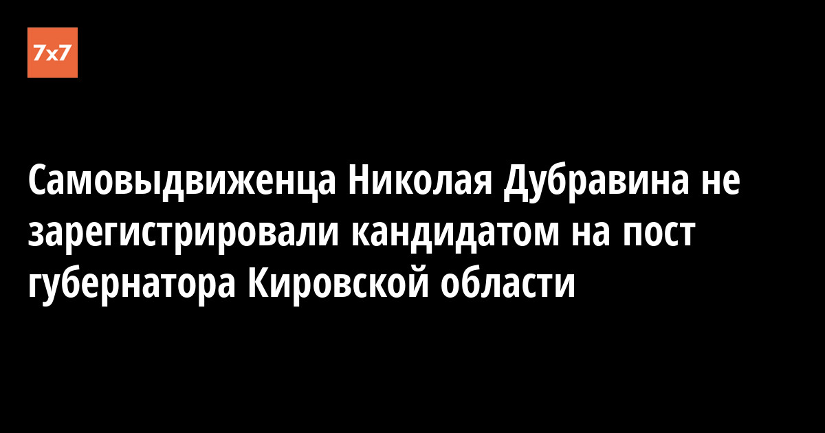 Избирательная комиссия Кировской области 4 августа отказала в регистрации в качестве кандидата на пост губернатора самовыдвиженцу Николаю Дубравину, сообщается на сайте комиссии.