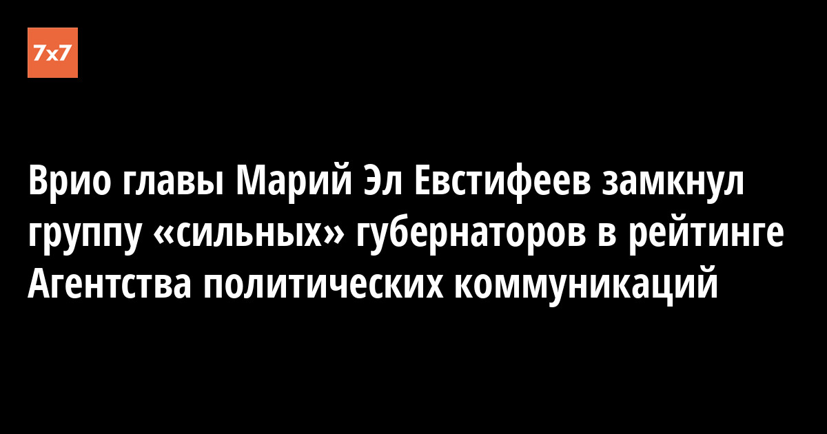Временно исполняющий обязанности главы Марий Эл Александр Евстифеев замкнул группу губернаторов с сильным влиянием — 7 августа опубликован рейтинг Агентства политических и экономических коммуникаций (АПЭК). Евстифеев занял 50-е место из 85.