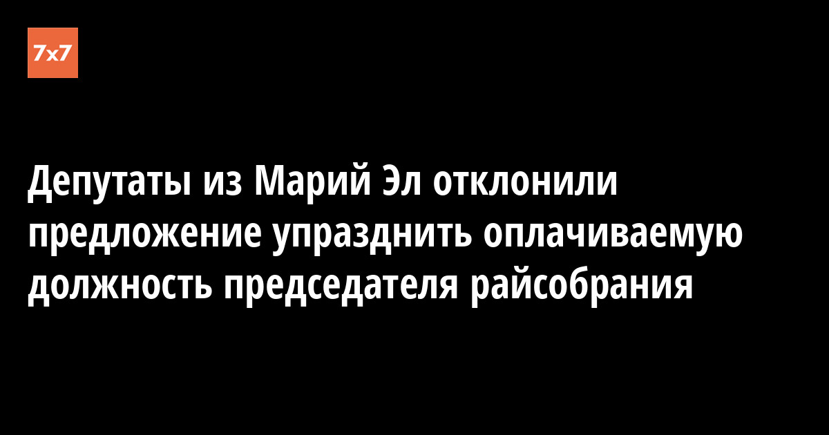 Предложение единоросса Александра Пекунькина об упразднении оплачиваемой должности председателя Горномарийского районного собрания депутаты отклонили на сессии 9 августа. Об этом корреспонденту «7x7» сообщил председатель райсобрания Александр Гурьянов.