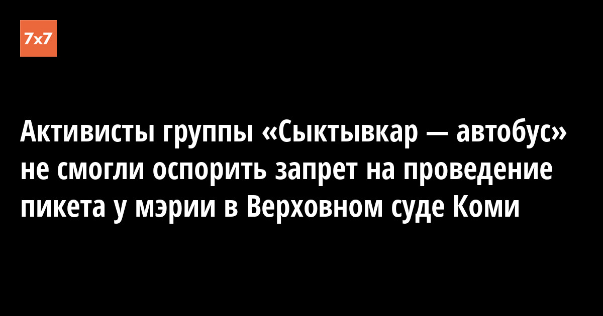 Верховный суд Коми оставил в силе решение Сыктывкарского горсуда о запрете проведения пикета о проблемах общественного транспорта, на который хотели выйти активисты группы «Сыктывкар — автобус». Такое решение принято в суде 8 сентября, передает корреспондент «7x7».