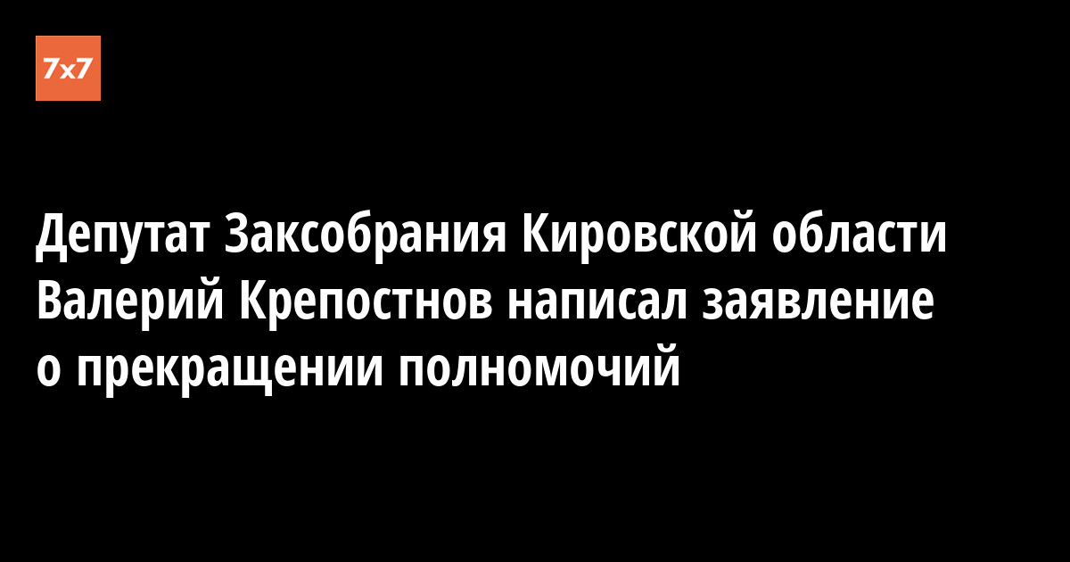 Депутат парламента Кировской области Валерий Крепостнов написал заявление о досрочном сложении полномочий, об этом «7x7» 15 августа сообщили в информационно-аналитическом управлении Заксобрания.