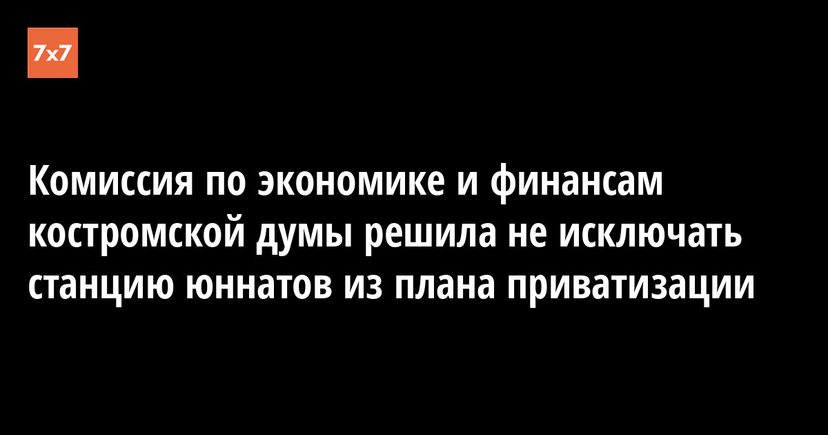 Члены комиссии по экономике и финансам думы Костромы рассмотрели предложение депутата Александра Соколова и решили не исключать из плана приватизации муниципального имущества на этот год бывшую станцию юннатов на ул. Мясницкой, 19а, сообщил 19 сентября корреспондент «7х7».