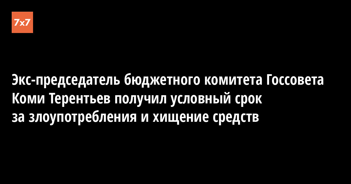 Сыктывкарский городской суд 11 октября приговорил экс-председателя Комитета Государственного Совета Коми по бюджету, налогам и экономической политике, бывшего главу Управления противопожарной службы и гражданской защиты по Коми Игоря Терентьева к четырем годам условного срока и штрафу в 500 тыс. руб. Об этом сообщила пресс-служба Следственного управления СК по Коми.