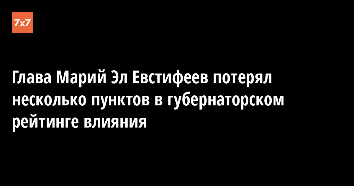 Глава Марий Эл Александр Евстифеев опустился с 43-го на 49-е место в губернаторском рейтинге влияния. Рейтинг опубликован 7 ноября на сайте Агентства политических и экономических коммуникаций.