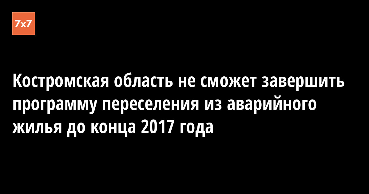 Костромская область — один из восьми регионов, которые до 31 декабря 2017 года не смогут выполнить программу переселения граждан из аварийного жилья. Об этом на заседании наблюдательного совета Фонда содействия реформированию ЖКХ сообщил заместитель генерального директора госкорпорации Олег Рурин. Информация опубликована 21 ноября на официальном сайте фонда.