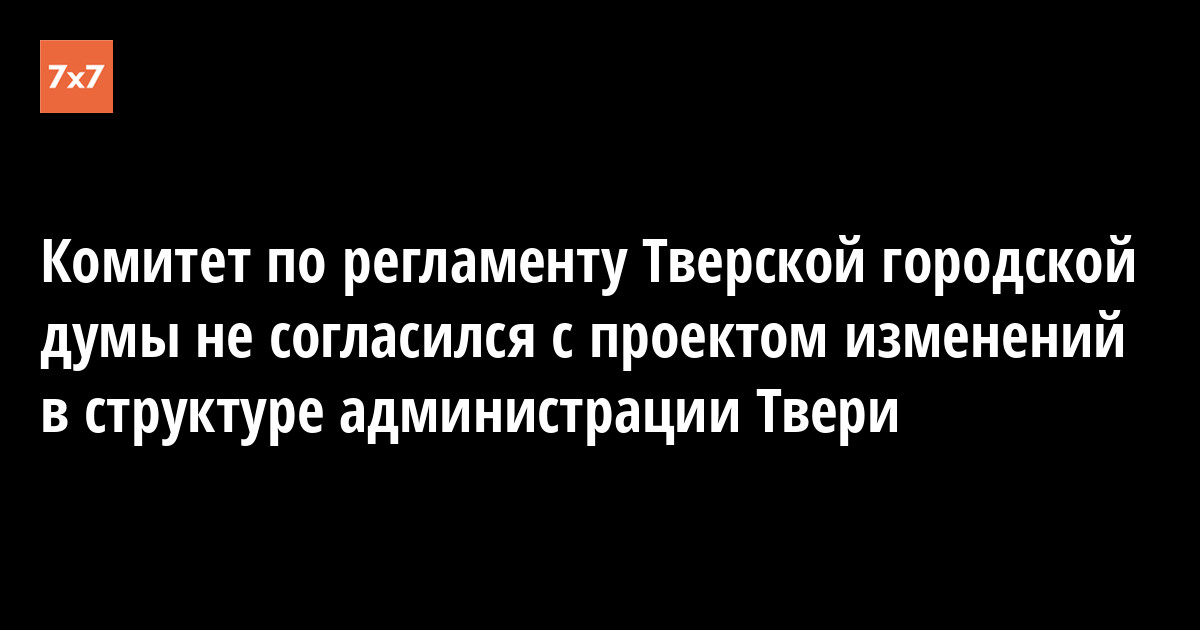 Комитет по регламенту и местному самоуправлению Тверской городской думы 23 ноября дал отрицательное заключение на проект изменения структуры администрации Твери. Об этом в Facebook сообщил депутат от КПРФ Сергей Шишков.