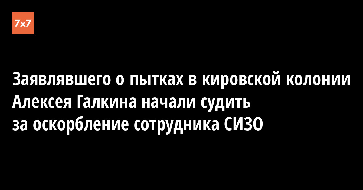 В Ленинском районном суде Кирова начался судебный процесс над Алексеем Галкиным, который заявлял о том, что его пытали в колонии №20, а после этого получил срок за ложный донос. Его обвинили в оскорблении сотрудника следственного изолятора. Об этом «7x7» 5 декабря сообщил защитник Галкина Пётр Курьянов.