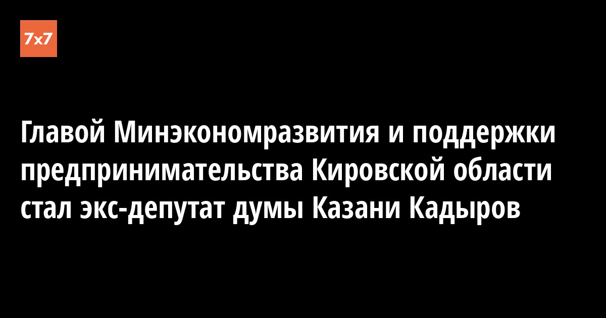Губернатор Кировской области Игорь Васильев 18 декабря назначил на пост министра экономического развития и поддержки предпринимательства бывшего депутата Казанской городской думы Владислава Кадырова. Об этом сообщил пресс-центр правительства.