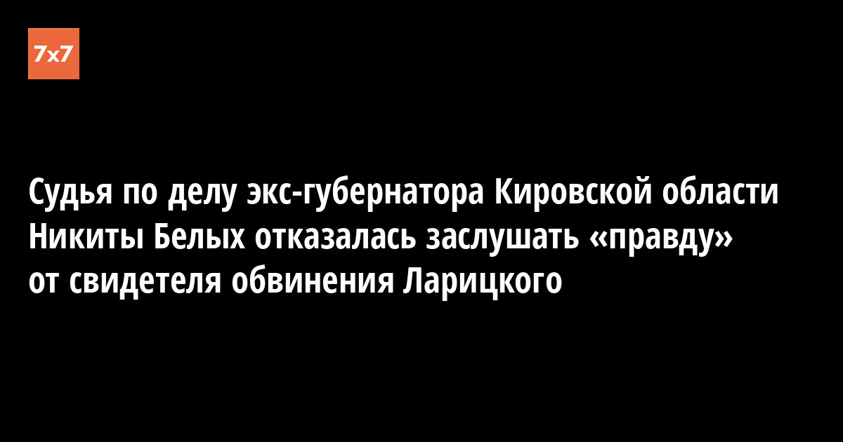 На заседании по делу экс-губернатора Кировской области Никиты Белых 9 января судья Татьяна Васюченко отказалась повторно допросить бывшего владельца Нововятского лыжного комбината и УК «Лесхоз» Альберта Ларицкого, пожелавшего «сообщить суду правду». Об этом сообщила «Медиазона».