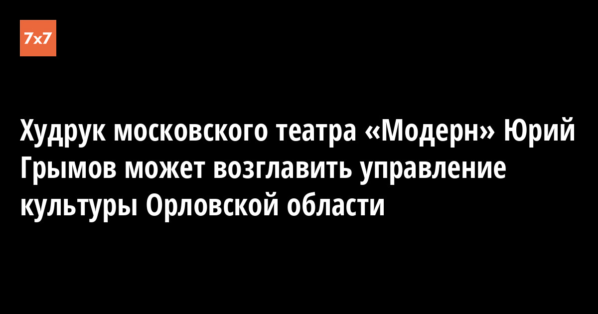 Художественный руководитель московского театра «Модерн», режиссер Юрий Грымов может возглавить управление культуры Орловской области, об этом 11 января сообщил сайт «Орловские Новости».