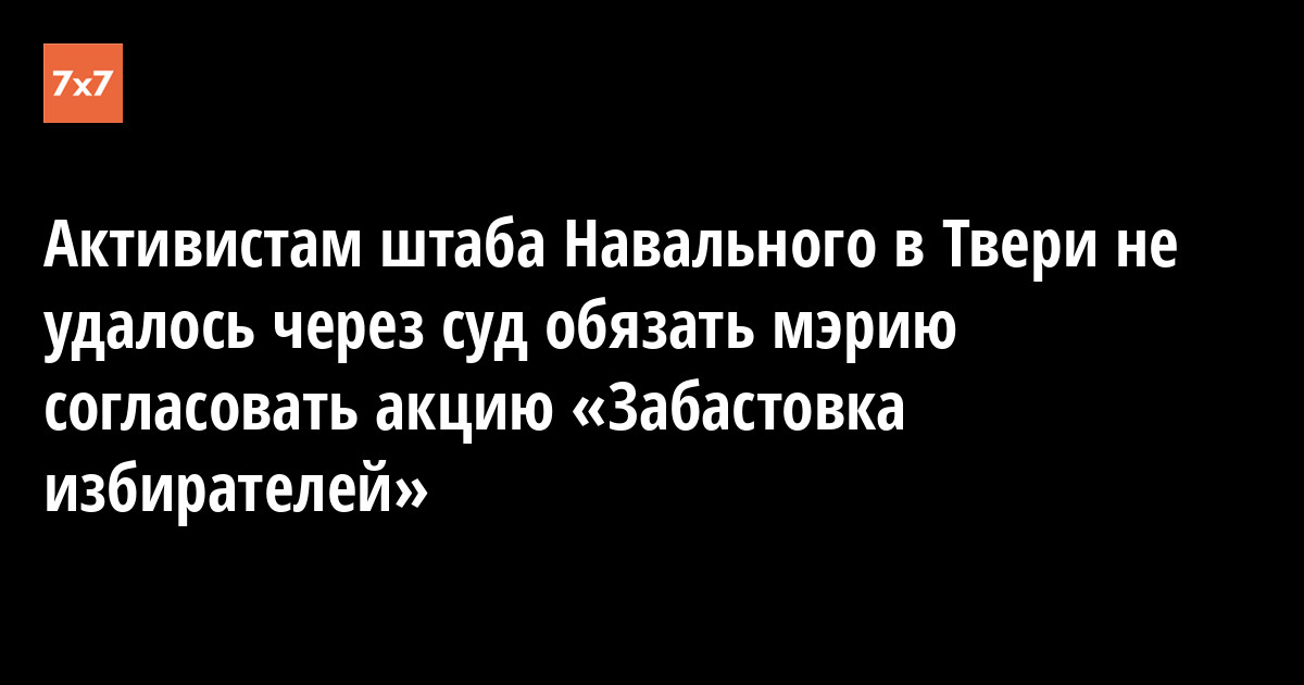 Пролетарский районный суд Твери 26 января отказал активистам штаба Навального, которые требовали признать незаконным отказ администрации города согласовывать акцию «Забастовка избирателей». Об этом сообщает корреспондент «7x7».