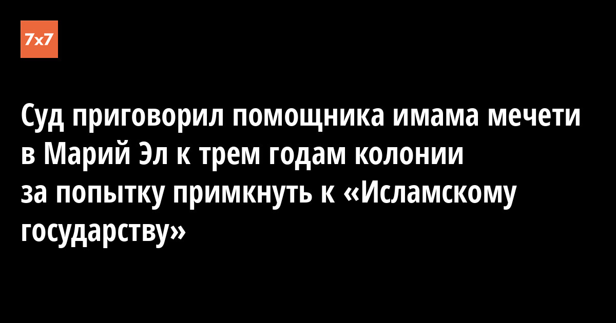 Приволжский окружной военный суд приговорил помощника имама центральной мечети поселка Параньга в Марий Эл Фарида Сафина к трем годам колонии строгого режима за попытку вступить в ряды ИГИЛ (Исламское государство Ирака и Леванта, запрещенная в России международная террористическая организация). Об этом 7 февраля сообщил «Интерфакс».