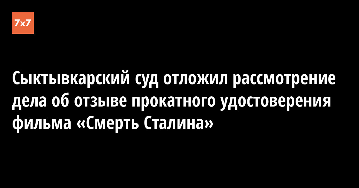 Сыктывкарский городской суд 15 февраля перенес рассмотрение дела об отзыве прокатного удостоверения фильма «Смерть Сталина» на 14 марта. Министерство культуры России, которое и запретило показывать картину в отечественных кинотеатрах, просило отказать в рассмотрении иска или отложить его рассмотрение. Об этом сообщил корреспондент «7x7», который присутствует на заседании.