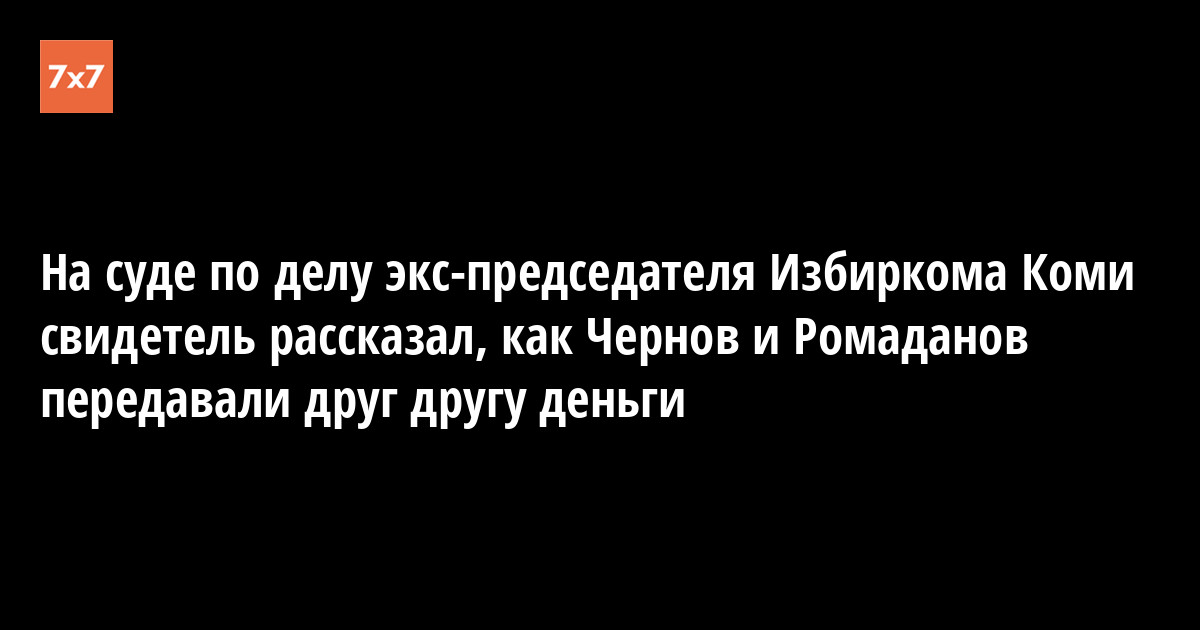В Сыктывкарском городском суде по делу бывшего председателя Избиркома Коми Елены Шабаршиной, обвиняемой во взятках, бывший начальник управления информации администрации правительства республики Павел Марущак рассказал, что заместитель главы Коми Алексей Чернов и заместитель председателя правительства республики Константин Ромаданов передавали друг другу деньги. На заседании 22 февраля свидетель заявил, что делать они это могли по дружбе, передает из зала суда корреспондент «7x7».