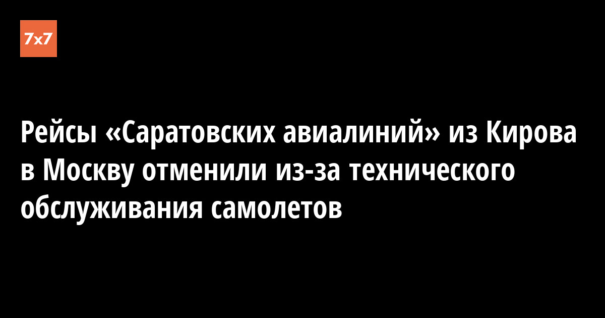 Авиакомпания «Саратовские авиалинии» отменила рейсы в Москву с 20 марта по 25 апреля из-за того, что самолеты АН-148 проходят техническое обслуживание. Об этом «7x7» 14 марта сообщил пресс-секретарь кировского аэропорта «Победилово» Алексей Губин.