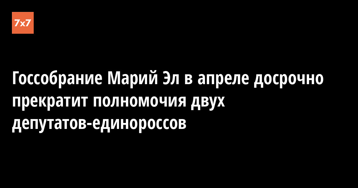 Государственное собрание Марий Эл досрочно прекратит полномочия двух депутатов от «Единой России», информация опубликована на сайте парламента республики. На заседании, которое должно состояться 26 апреля, будут рассмотрены заявления Алексея Степанова и Сергея Вершинина.